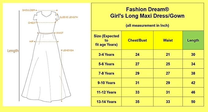 Spruce up your wardrobe with this dress from Fashion Dream available on Amazon. This Fit and flare dress is perfect for a day out with friends or a night of get-togethers with family. You can layer it with a denim jacket or a single lined blazer and you're sure to make heads turn.This design girls frock is made from satin Bangalori, along with inside micro cotton inner which gives smoothness and comfy to wear for a long time.It features round neckline, sleeveless , long maxi dress.Fresh your princess girl mood by offering this frock to your girl.