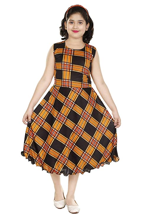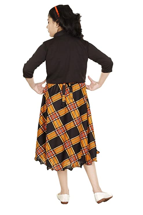 DIGIMART Girls Knee Length Yellow Checks Frock,Black Jacket Dress( Min Quantity : 10)