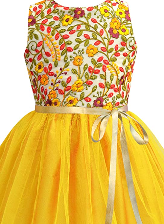 A.T.U.N. offers its one of a kind embroidered dresses in the most amazing colors and silhouettes. A flared skirt with tulle overlay makes it a comfortable option to adorn. Sateen belt attached along the waist and a zip along the back.