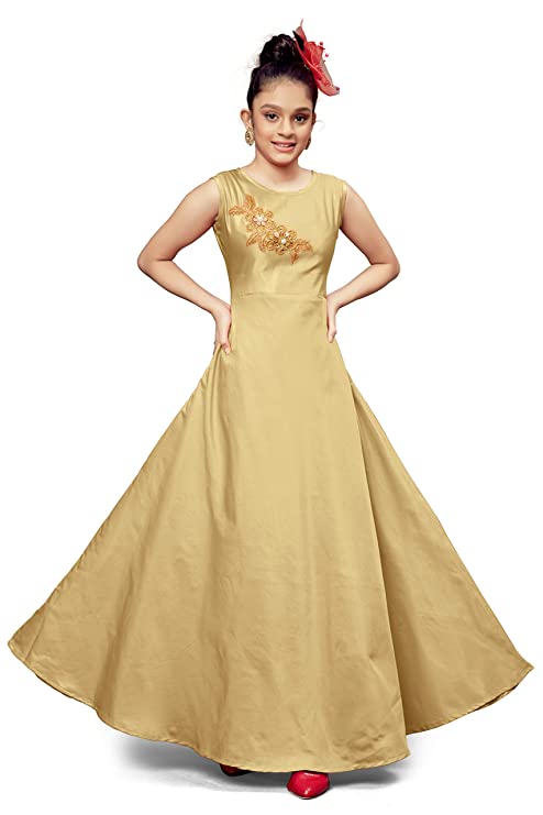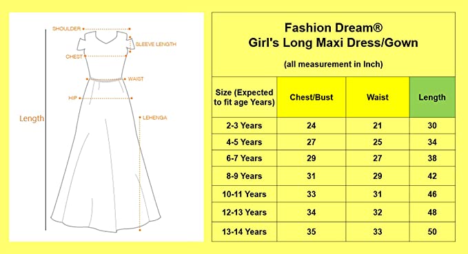 Spruce up your wardrobe with this dress from Fashion Dream available on Amazon. This Fit and flare dress is perfect for a day out with friends or a night of get-togethers with family. You can layer it with a denim jacket or a single lined blazer and you're sure to make heads turn.This design girls frock is made from satin Bangalori, along with inside micro cotton inner which gives smoothness and comfy to wear for a long time.It features round neckline, sleeveless , long maxi dress.Fresh your princess girl mood by offering this frock to your girl.
