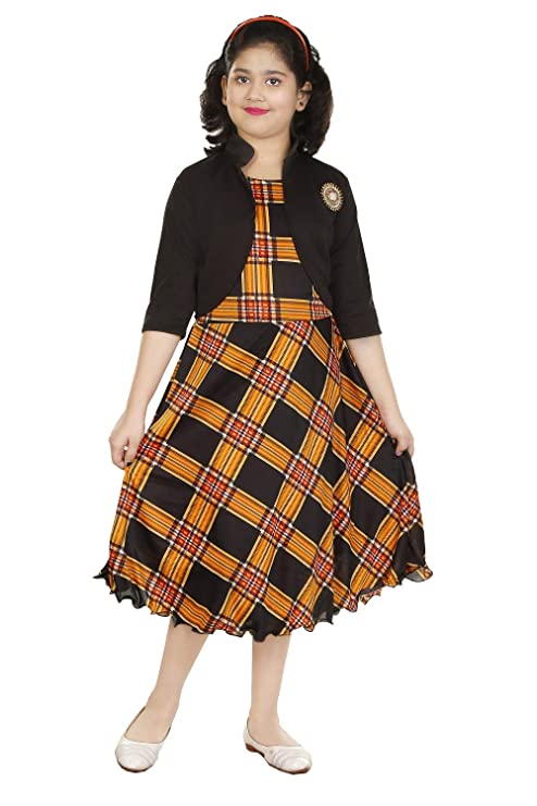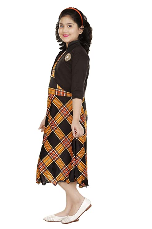 DIGIMART Girls Knee Length Yellow Checks Frock,Black Jacket Dress( Min Quantity : 10)