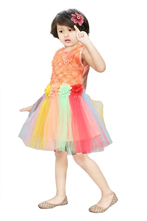Girls knee length party ware gown dress is going to make your little darling look elegant and sophisticated. Let her team it with a pair of ballerinas and matching accessories for a picture perfect look. Your little girl will become the cynosure of all eyes when you dress her up in this beautiful party dress. It presents a completely new look for your princess. This upcoming season add colours to the collection of your daughter and a new freshness in her wardrobe. These dress providing her absolute comfort and skin friendly feel. Dress her to take one's breath away with our beautiful collection of girls' special occasional apparals.